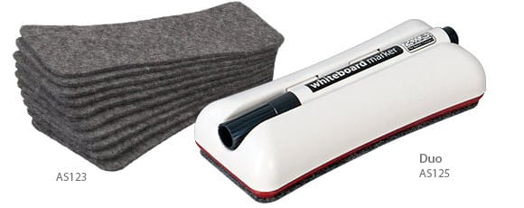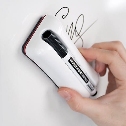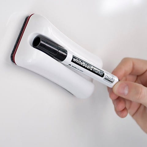 Połączenie czyścika i holdera – z miejscem na jeden marker. Wbudowany magnes pozwala łatwo przytwierdzić czyścik w dowolnym miejscu tablicy.