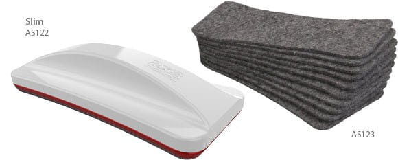 Trwała i estetyczna obudowa, wymienne wkłady filcowe przyczepiane na rzep. Wbudowany magnes pozwala łatwo przytwierdzić czyścik w dowolnym miejscu tablicy.