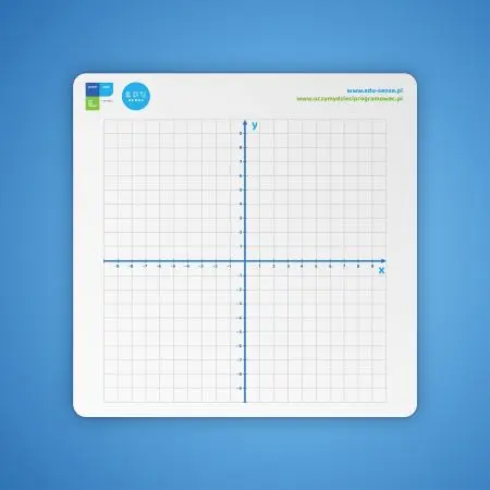 Mata do kodowania w rozmiarze 100x100 cm, to uniwersalne narzędzie edukacyjne, idealne dla przedszkoli i szkół podstawowych. Dwustronna mata z unikalną kratownicą o 100 polach (każde pole ma 8x8cm), została podzielona niebieskimi liniami na symetryczne części. Osie na macie oznaczone są za pomocą cyfr i liter.