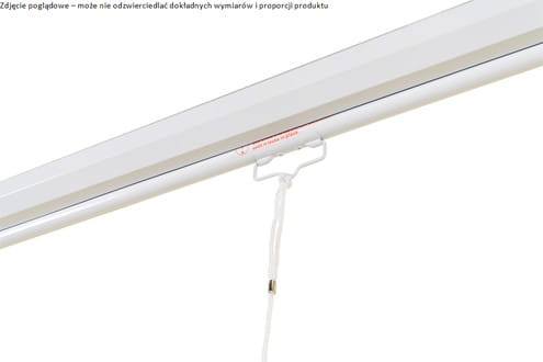 Dolna belka zapobiega fałdowaniu materiału. Regulacja ręczna z blokadą zabezpieczającą przed zwijaniem. Regulacja wysokości dolnej krawędzi. Wysokiej jakości powierzchnia projekcyjna ze współczynnikiem odbicia światła 1.0.