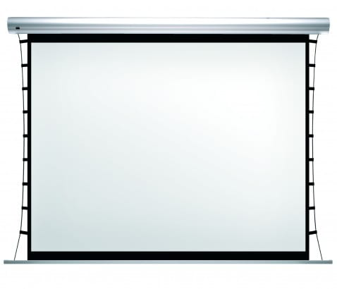 Seria BlueLabel XL Tensioned to ekran z napędem elektrycznym umożliwiający jego rozwijanie/zwijanie (opcja 60 miesięcznej gwarancji na silnik ekranu). System napinaniaczy zapewniający gładką i płaską powierzchnię ekranu.