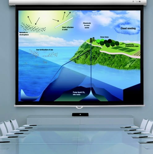Ręcznie rozwijany ekran projekcyjny Feniks z linii profesjonalnej z regulowanym systemem mocowania ścienno-sufitowego.