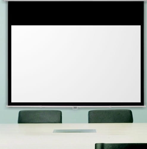 Ręcznie rozwijany ekran projekcyjny z linii profesjonalnej PREMIUM, z systemem powolnego zwijania.