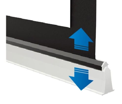 Sterowanie na pilota IR, wbudowany odbiornik RF (pilot RF w opcji), złącze RS i Dry Contact. Cichy silnik tubowy wbudowany w kasetę ekranu. Narzędzie do regulacji krańcówek. Wysokość kasety do zabudowy tylko 119mm (dla ekranów o szerokości od 332cm - 160mm).