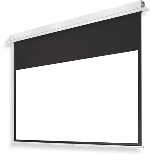 Elektrycznie rozwijany ekran projekcyjny Polaris Pro z linii PROFESJONALNEJ PREMIUM przeznaczony do zabudowy sufitowej ze zintegrowanym sterowaniem IR+RF + RS + Dry Contact. Czarna ramka dookoła powierzchni aktywnej oraz czarny górny pas (TOP) na wyposażeniu seryjnym.