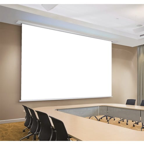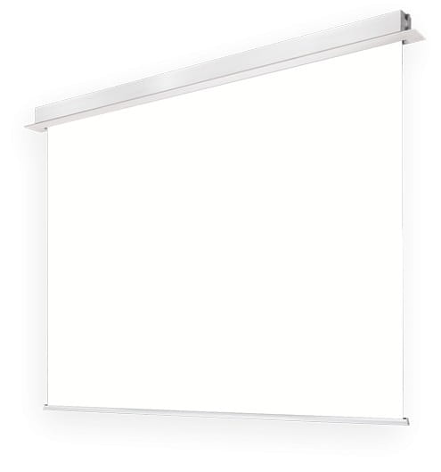 Elektrycznie rozwijany ekran projekcyjny Polaris Pro White z linii PROFESJONALNEJ PREMIUM, przeznaczony do zabudowy sufitowej, ze zintegrowanym sterowaniem IR+RF + RS + Dry Contact.