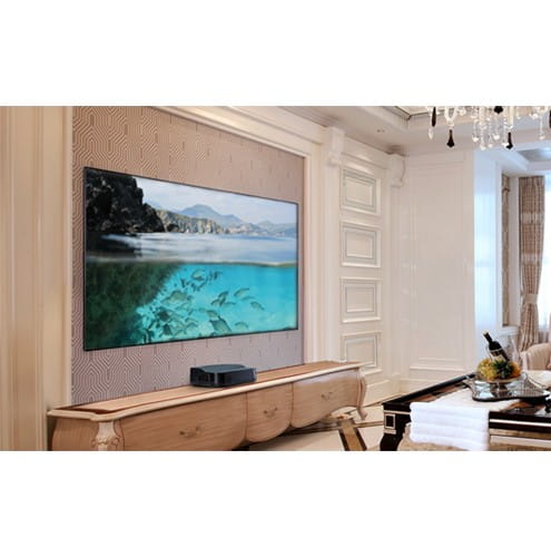 Ekran ścienny Taurus Slim ALR Lite, ramowy z linii REZYDENCJONALNEJ PREMIUM z powierzchnią odbijającą światło rozproszone, do projektorów ultrakrótkoogniskowych. Rama szerokości 12mm.
