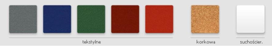 - Powierzchnia: tekstylna (dostępne 5 kolorów: popielaty, niebieski, ciemnoczerwony, czerwony, zielony)