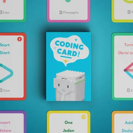 Innowacyjny, intuicyjny sposób programowania, niewymagający dostępu do sprzętu komputerowego, dedykowany szczególnie najmłodszym użytkownikom (już od 4 roku życia). Ułożony przy pomocy kart do kodowania program pozwala wprowadzić robota w ruch i sprawić, żeby wykonywał wybraną sekwencję poleceń. Dzięki temu dziecko ma możliwość poznania podstawowych konstrukcji programistycznych. Uczy się jak stosować pętlę, warunki czy funkcje. Różnorodny zestaw komend, umożliwi również tworzenie bardziej skomplikowanych sekwencji. Karty zostały przygotowane w języku polskim i angielskim, co daje dodatkowe możliwości nauki języka angielskiego.