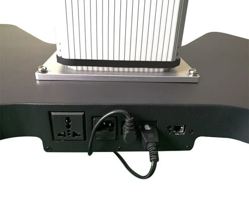 Praktyczną zaletą regulacji wysokości jest możliwość obniżenia górnej krawędzi monitora do poziomu umożliwiającego swobodny przejazd przez drzwi. Podstawa solidnie i profesjonalnie wykonana z wysokiej jakości aluminium, trwała i stabilna, gwarantująca bezpieczeństwo pracy. Obsługa statywu pilotem podwyższa komfort pracy z zestawem, znosi konieczność ręcznego regulowania i stabilizacji systemu.