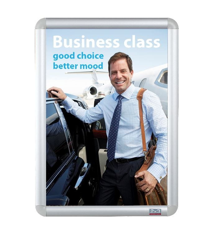 Ramka z anodowanego aluminium w kolorze srebrnym, zawierająca system zatrzaskowy OWZ (Otwórz-Włóż-Zamknij). Wyposażona w elastyczną folię antyrefleksyjną z filtrem UV o grubości 0,5 mm, która tłumi refleksy światła, chroniąc plakat przed blaknięciem. Tylna ściana wykonana z trwałego i odpornego na pęknięcia materiału. Do użytku we wnętrzach.
