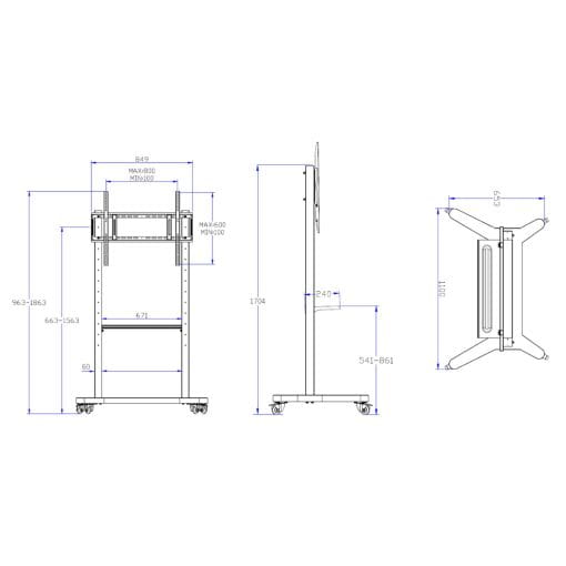 Statyw mobilny myBoard obsługuje monitory o przekątnej od 55 do 86 cali z maksymalnym udźwigiem do 80 kg. Statyw jest kompatybilny ze standardem VESA od 100x100 do 800x500 oraz zapewnia łatwy montaż różnych modeli monitorów interaktywnych. Wyposażony w kółka z funkcją blokady oraz w dodatkową półkę na laptopa lub inne przydatne akcesoria.