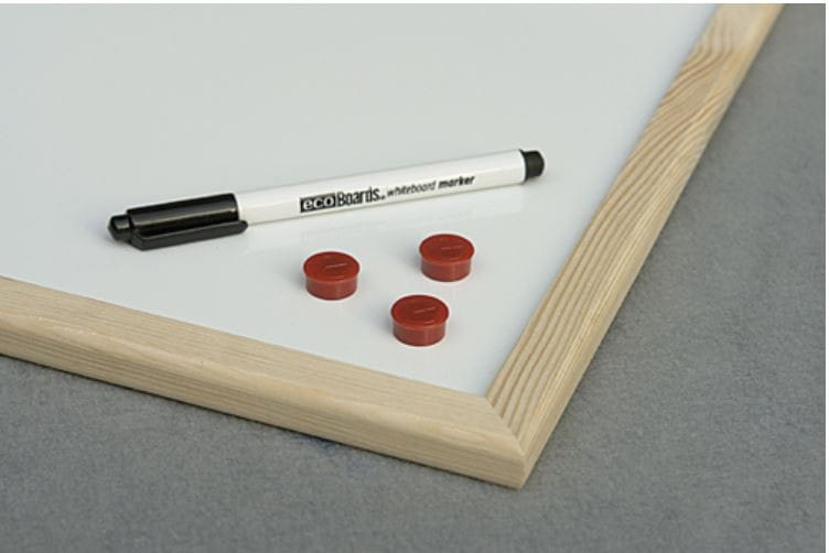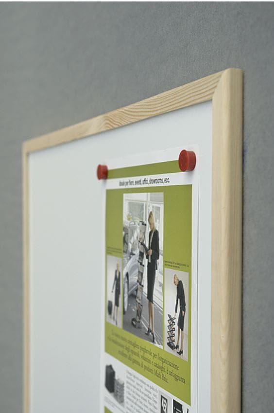 Tablica biała suchościeralna lakierowana o właściwościach magnetycznych, oprawiona w elegancką ramę z litego drewna sosnowego. Wyjątkowo łatwa i szybka w montażu.