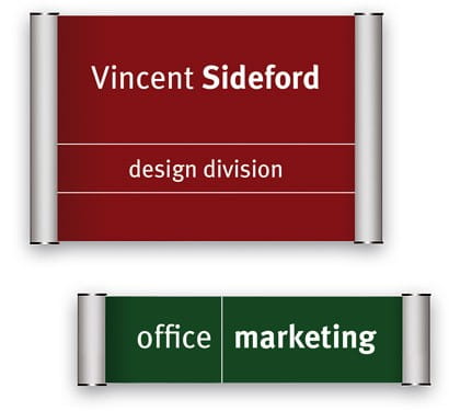 Tabliczka informacyjna przydrzwiowa przeznaczona do użytku zewnętrznego lub wewnętrznego. Składa się z dwóch aluminiowych profili o szerokości 25 mm, wykończone eleganckimi, grafitowymi zaślepkami. Rama dostępna w kolorze srebrnym anodowanym.