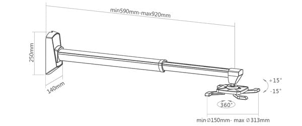 Uchwyt ścienny do projektora 2x3 model US3 59-92 cm