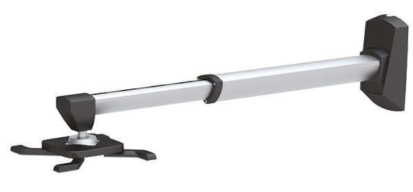Wyposażony w regulowane ramiona umożliwiające przymocowanie każdego typu projektora, którego waga nie przekracza 10 kg.