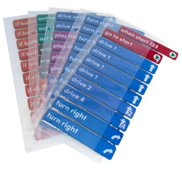 - Tabliczka kodująca + bloczki kodu, wykorzystaj tabliczkę kodującą, ułóż sekwencje składającą się z maksymalnie 10 bloczków kodu i obserwuj zachowanie robota.