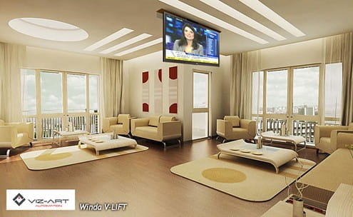 Podnośniki do telewizorów V-lift, otwierają ogromne możliwości zastosowań. Teraz zastosowania windy do TV zależą od waszej fantazji. Podnośnik V-Lift wysuwa i chowa płaski telewizor, plazmę czy monitor LCD reagując na sygnał z pilota.