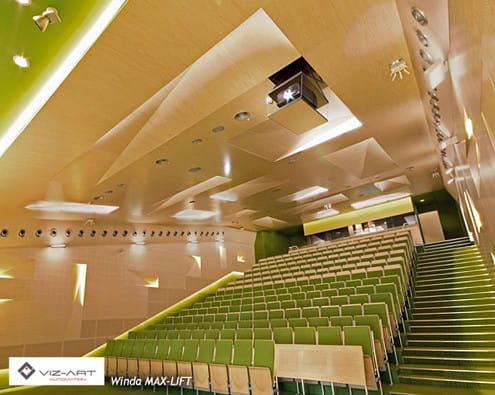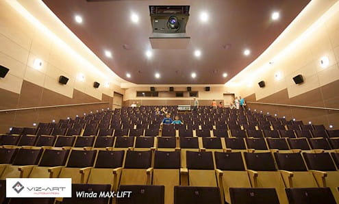 Winda MAX-LIFT jest wybierana przez osoby ceniące trwałe rozwiązania. Wysoka precyzja zatrzymania windy pozwala na instalację wszystkich modeli projektorów do 130 kg, nawet tak wymagających technologii CRT i projektorów BARCO.