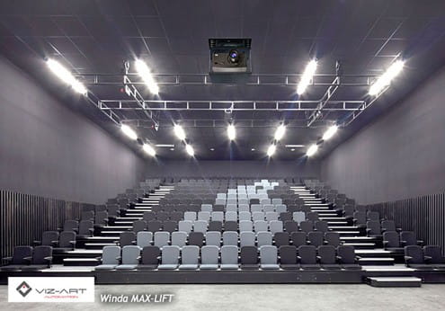 Model MAX-LIFT 130 do liczących się instalacji z projektorami. Winda do profesjonalnych projektorów używanych w wysoko zaawansowanych systemach projekcyjnych w wielkich wnętrzach (sale kinowe, centra konferencyjne, kina).