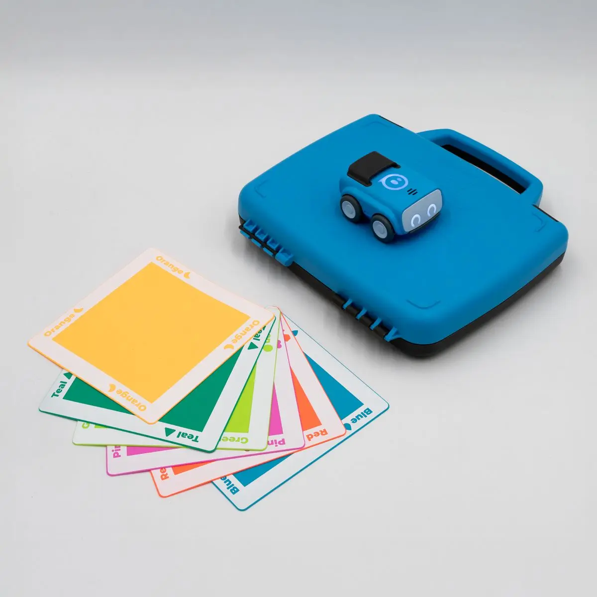 Offline (bez ekranów) – z wykorzystaniem kolorowych silikonowych kart. Każdy kolor to określona komenda, dzięki czemu dzieci kodują ruch robota poprzez układanie sekwencji barw.
