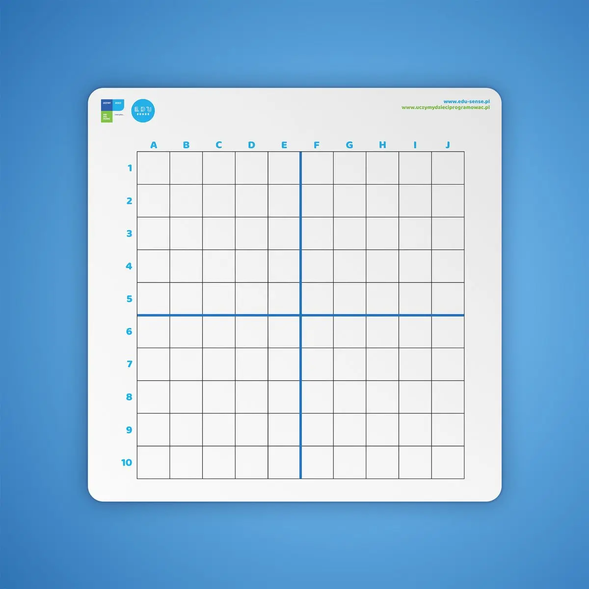 - Dwustronne duże maty edukacyjna (150×150 cm) do kodowania – idealna do zabaw grupowych, eksperymentów z ruchem i planowaniem trasy robota.