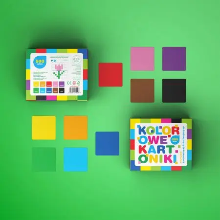 - 500 kolorowych kartoników do średniej maty do kodowania – urozmaicenie zajęć poprzez kodowanie kolorami i symbolami.