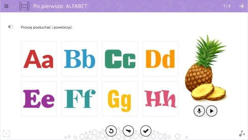 - teksty w wersji pisanej i do odsłuchania z symultanicznym podświetlaniem fragmentów, plansze tematyczne (np. rodzina, szkoła, ubrania), komentarze gramatyczne, zestawienia zwrotów komunikacyjnych oraz wiele różnorodnych ćwiczeń do poszczególnych części.
